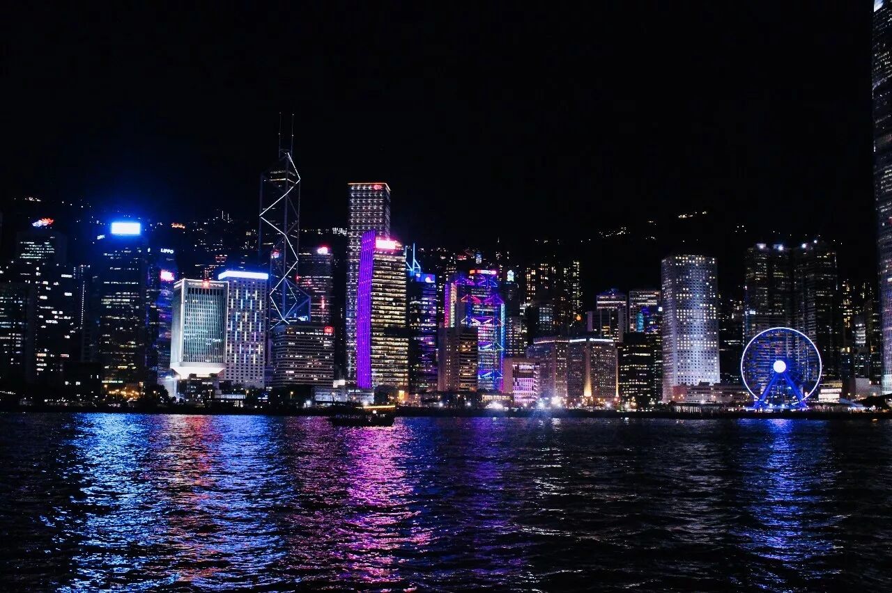 在轮渡上吃完饭 天已经黑下来了 往窗外看 远处建筑的彩色灯光打在水面上 波光粼粼 很是好看