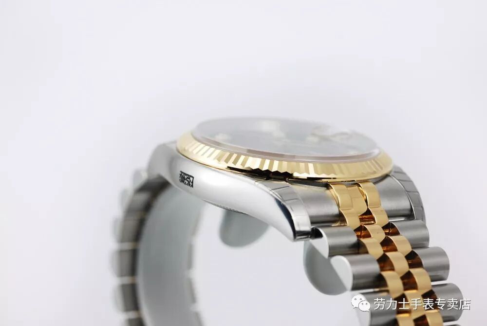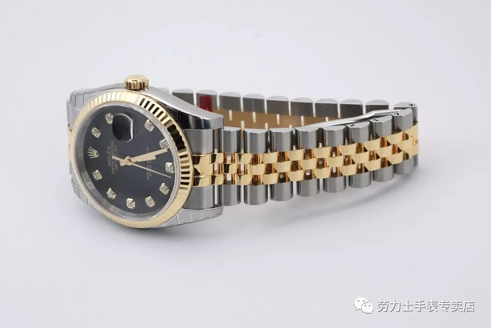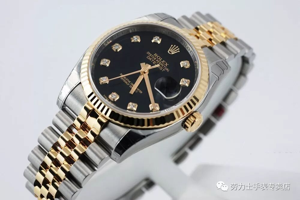 深邃黑色表盘镶嵌十颗真钻,闪耀奢华,下方刻有天文台认证标识,十二点钟位置劳力士品牌标识与典雅三针材质均选用18K金,三点钟位置日历显示,上方水滴状放大日历,体现瑞士人对时间的重视性。深邃黑色表盘镶嵌十颗真钻,闪耀奢华,下方刻有天文台认证标识,十二点钟位置劳力士品牌标识与典雅三针材质均选用18K金,三点钟位置日历显示,上方水滴状放大日历,体现瑞士人对时间的重视性。