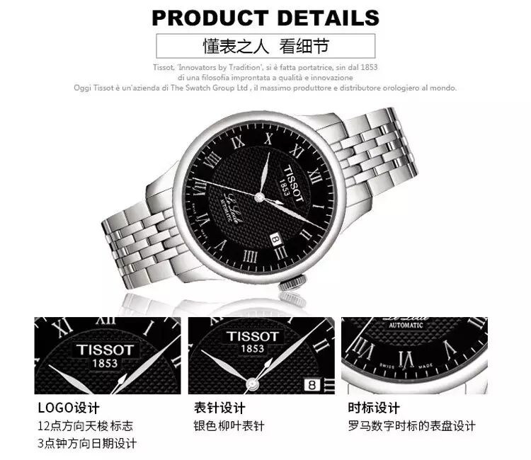 这款手表表盘,以黑色经典菱格纹面板搭配银色柳叶指针,美观而不落俗套。316L材质的精钢表壳与表带设计雅致稳重,对肌肤无刺激,搭配蝴蝶扣,更显高贵典雅。精细雕花半镂空底盖,可清晰观摩到机芯的运转;机芯选用ETA2824-2,虽然没有精细打磨,但无论是走时的稳定性还是精准度,丝毫不逊色。这款天梭TISSOT-力洛克系列T41.1.483.53男士机械表之所以如此受欢迎,还因为它亲民的价格,国内专柜公价4450元~![]()