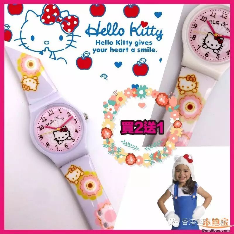 小朋友至爱的HELLO KITTY卡通手錶又来到e时代,优惠价$199/隻,更有买二送一。HelloKitty粉丝群由小孩到成年人都有,