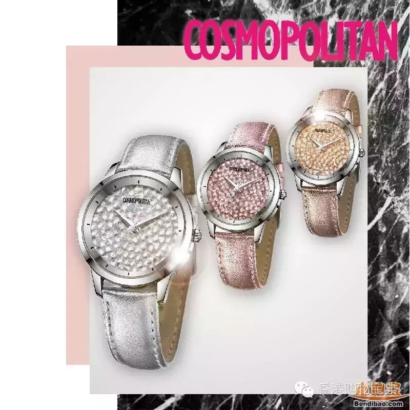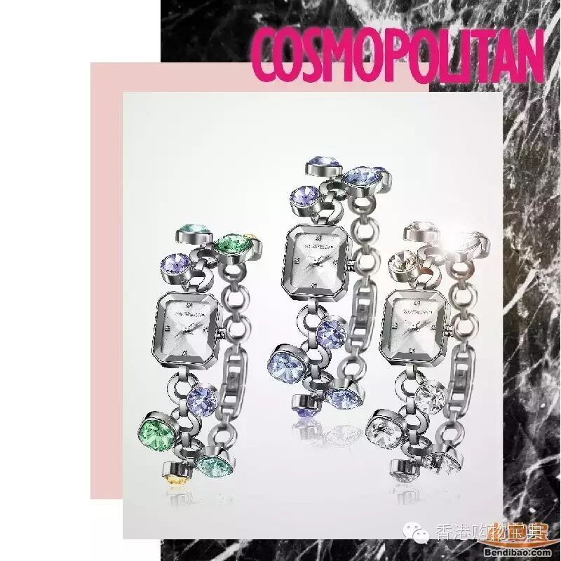 COSMO手錶是由美国COSMOPOLITAN时尚杂誌授权的时尚手錶品牌,其设计时尚,个性鲜明,绝对是潮流的代表。手錶用料名贵,日本塬装进口石英机芯,表身採用不銹钢材质,镶嵌SWAROVSKI水晶,效果更为闪烁,而且还具有30米的生活防水性能。