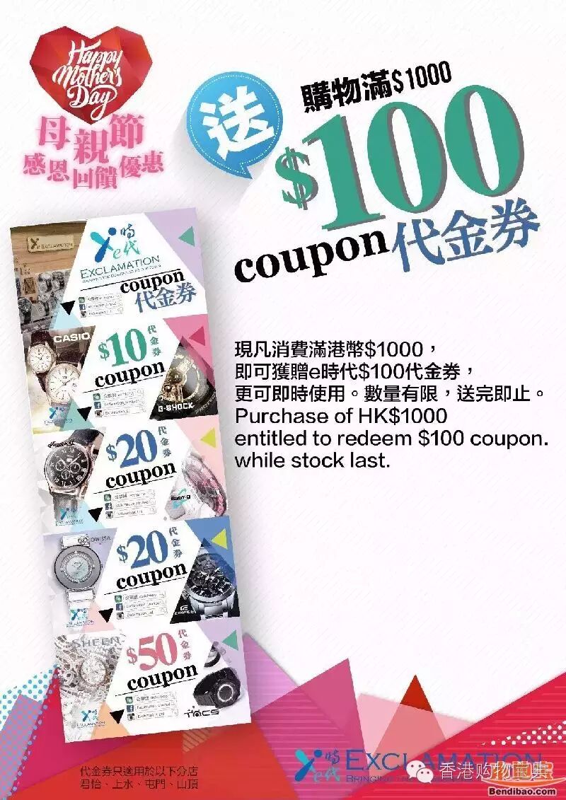 适逢母亲节这个温馨窝心的节日,所以e时代带来一个最新的窝心优惠给大家!于5月1日起,凡于e时代分店购物满$1000,即可得到价值$100代金劵($10一张,$20两张,$50一张)!