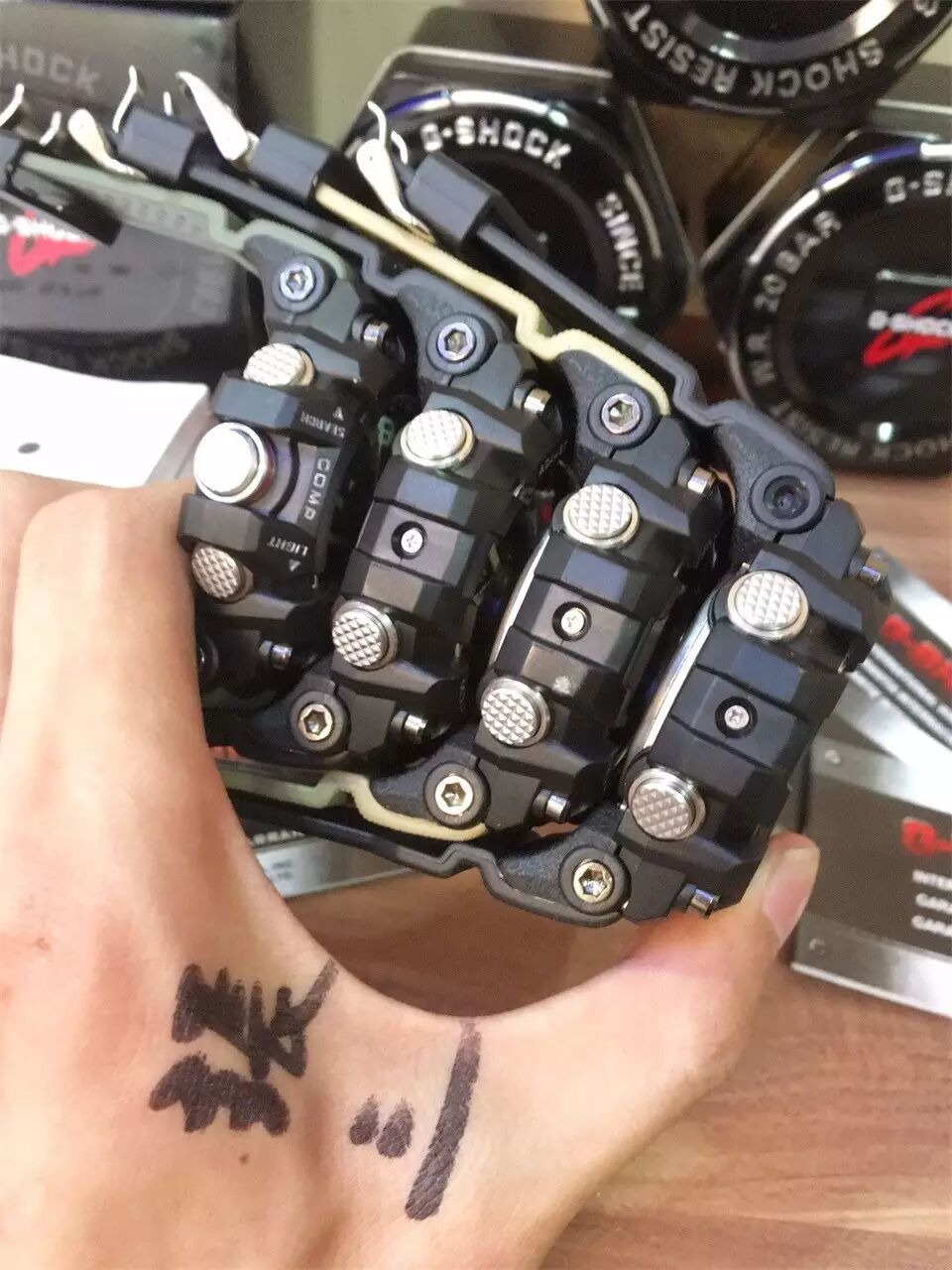 工厂偷拍~~哈哈 比较私密。最新的版本,不知道哪一款,只知道是豹纹的。在确认豹纹花色,等待表壳的量产,毕竟卡西欧的表壳大家都知道是我们大中国产的嘛。表壳完成后,组装好就可以出口了。