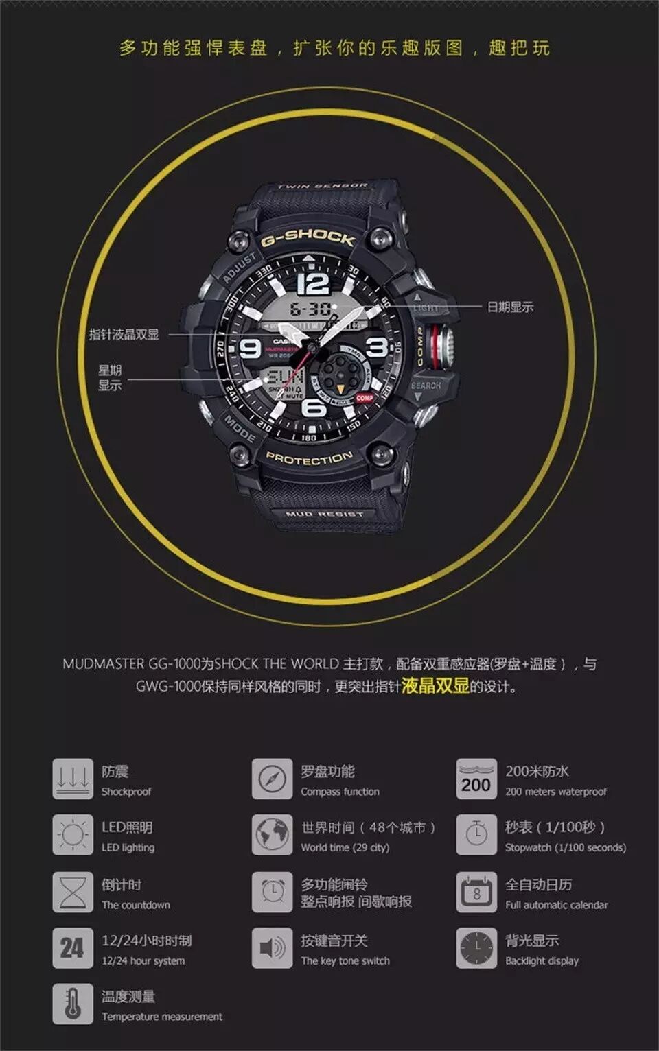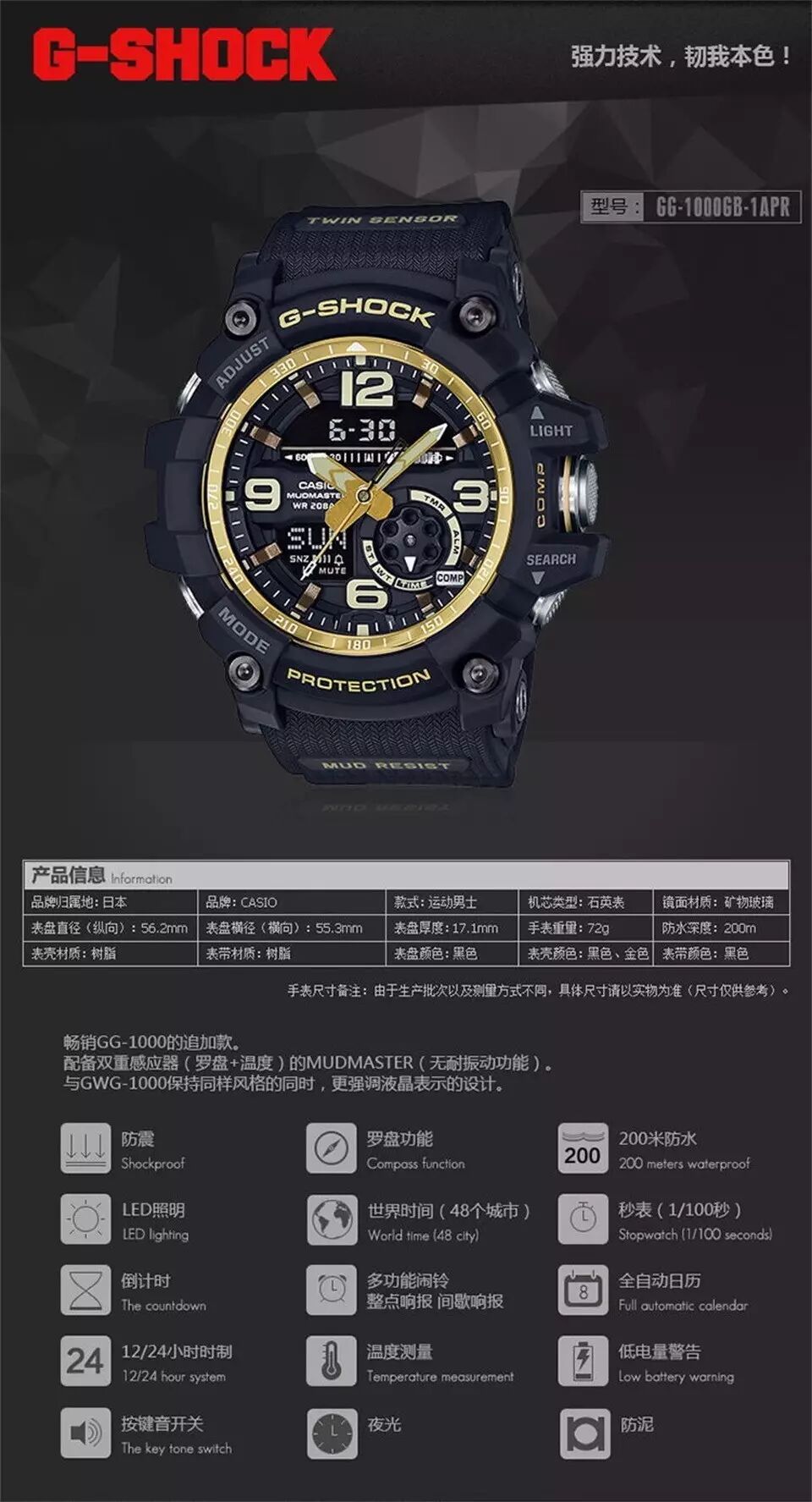 好东西我更觉得是应该由内而外去介绍的。中国负责组装的小泥王GG1000,机芯全部是由日本原装进口。我们拆开来给大家看了,希望大家能更直观的去了解他。它不光有颜值,它的内涵更是迷人。 自从去年出现至现在,真的火的不要不要的。大泥王高昂的价格,让很多小伙伴都望而却步。小泥王的出现满足了很多小伙伴的需求,除了不是光波之外,大泥王该有的功能 ,GG1000 全部都有。户外强大的指北针,实时温度显示。200米深潜防水,50多个地区时间。喜欢旅游的你,真的非常适合。 喜欢极限骑行的你,热爱极限登山的你,喜欢徒步的驴友,更是热爱潜水的小伙伴,GG1000真的不只是一块手表,他的强大功能能,是给我们保障的旅行伴侣。给你满满的安全感。不仅如此,在日常生活中,超高的颜值也是装逼利器。尽管你周围的朋友有一块劳力士,但是他的劳力士也只是一块耐看不耐用的钢疙瘩而已 。上不了雪山,入不了海洋,没意义。 我们拆开一个,大家可以直接看到 MADE IN JAPAN .机芯功能是非常强大。