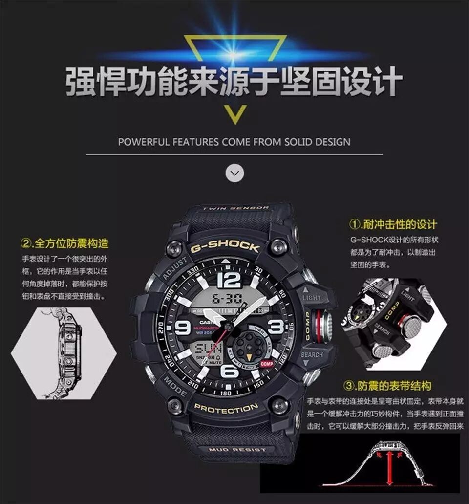 下面我们来看一组官方的介绍,坚韧无畏 坚固防护 强悍是一种态度。听着广告词就能感受他的强大,保护功能非常的强大。设计的本身,他已经就不单单是一块表,更是我们极限运动中的保护者。