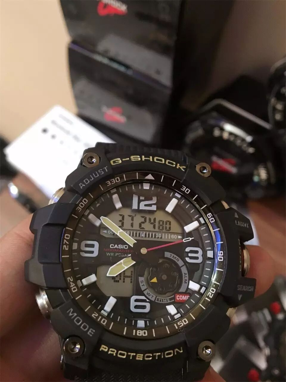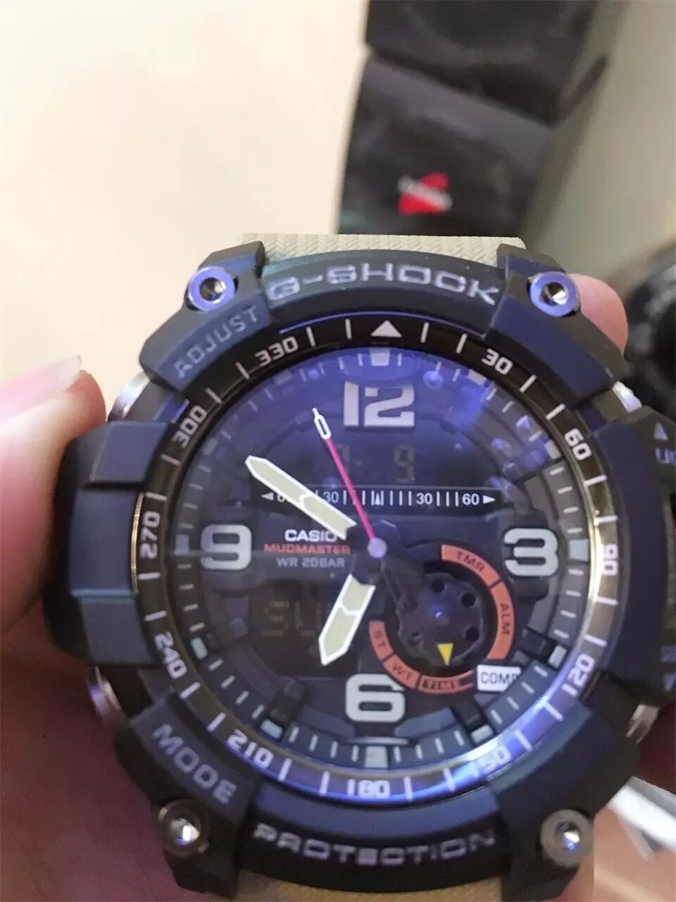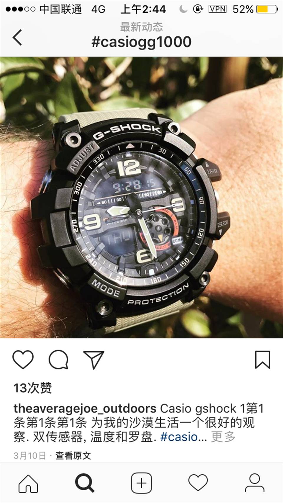 最后给大家一段手表的细节操作实拍,教大家如何使用卡西欧GG1000,他的实时温度与指北针的使用。在大家使用指北针的时候请注意避磁。如果手表指北针在不准的情况下,可以看说明书,上面有详细的消磁说明。