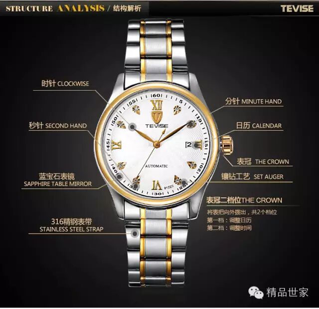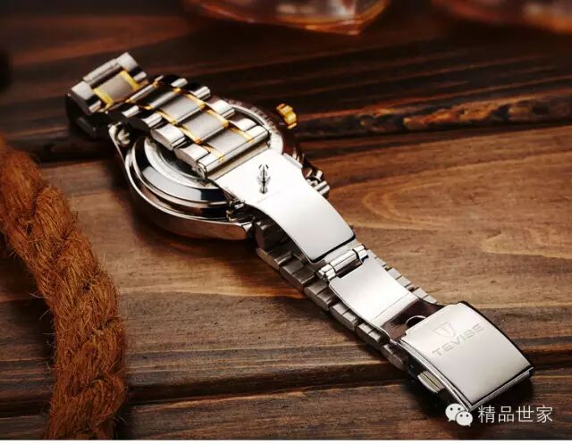 此款为全自动机械表,表盘背后透明钢化玻璃设计,可以看到机械机芯