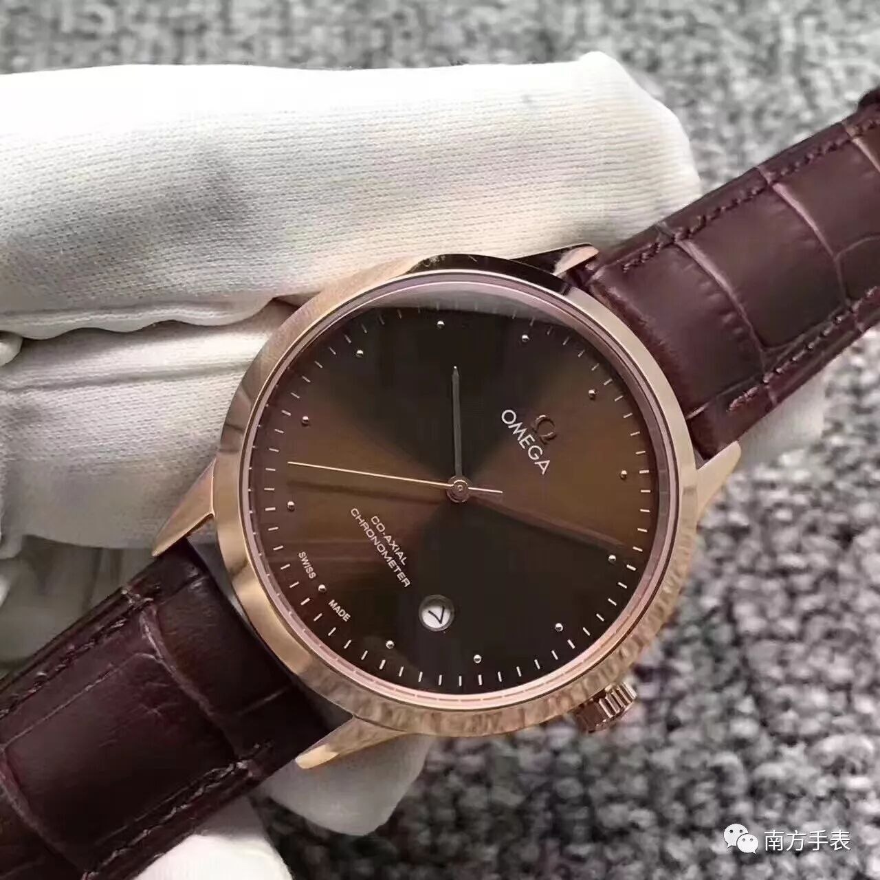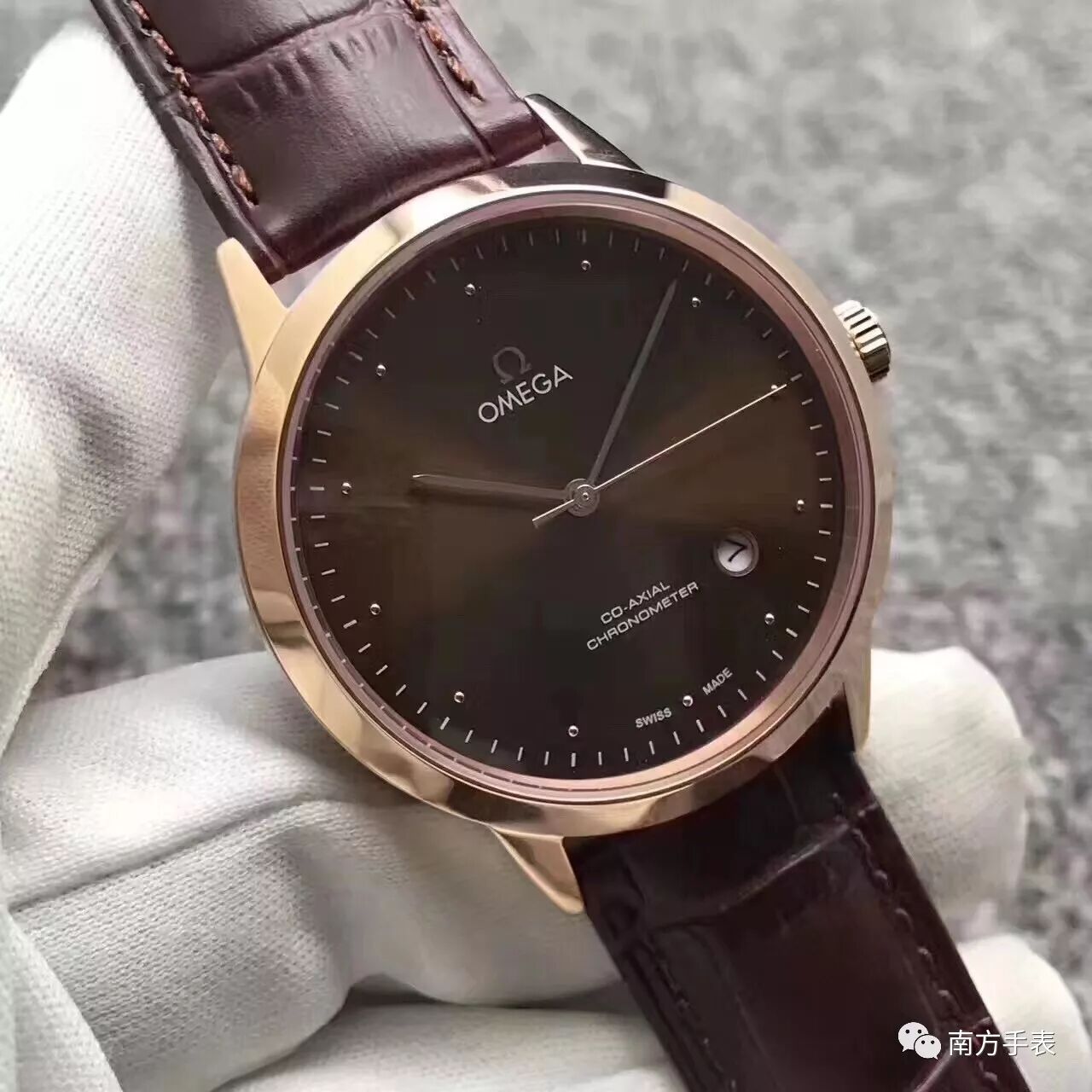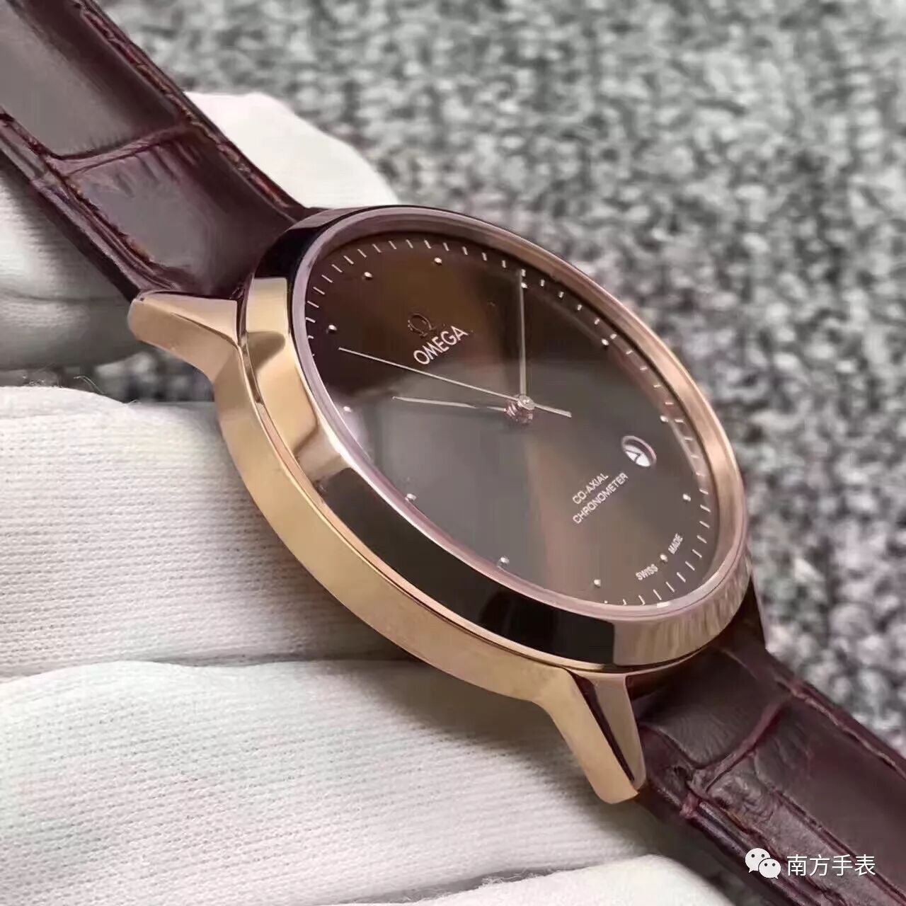 新款欧米茄,材料316钢精雕细琢,搭载零返修Cal.821A机芯,蓝宝石玻璃,搭配光泽靓丽的意大利小牛皮表带,有炫光蓝,土豪金,高档灰三色面任君选择!