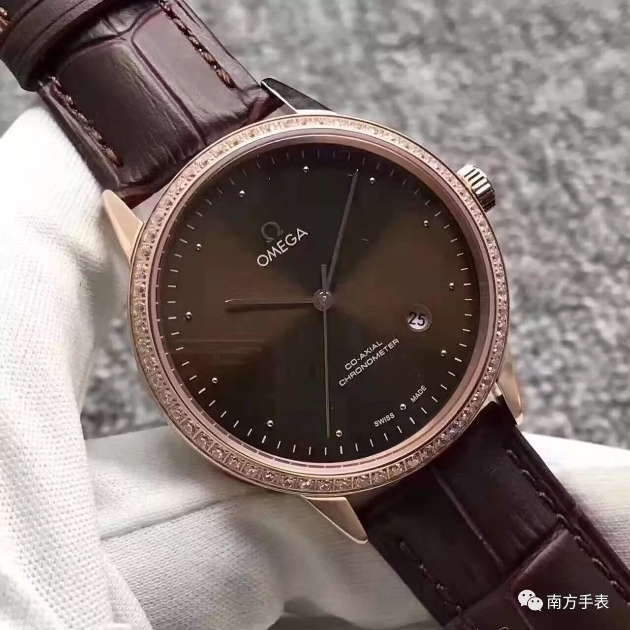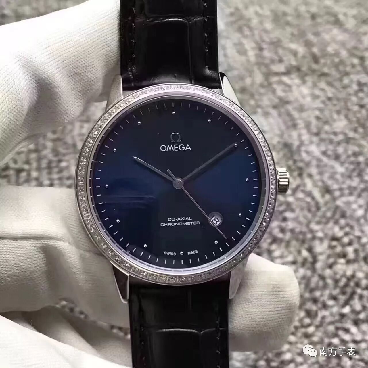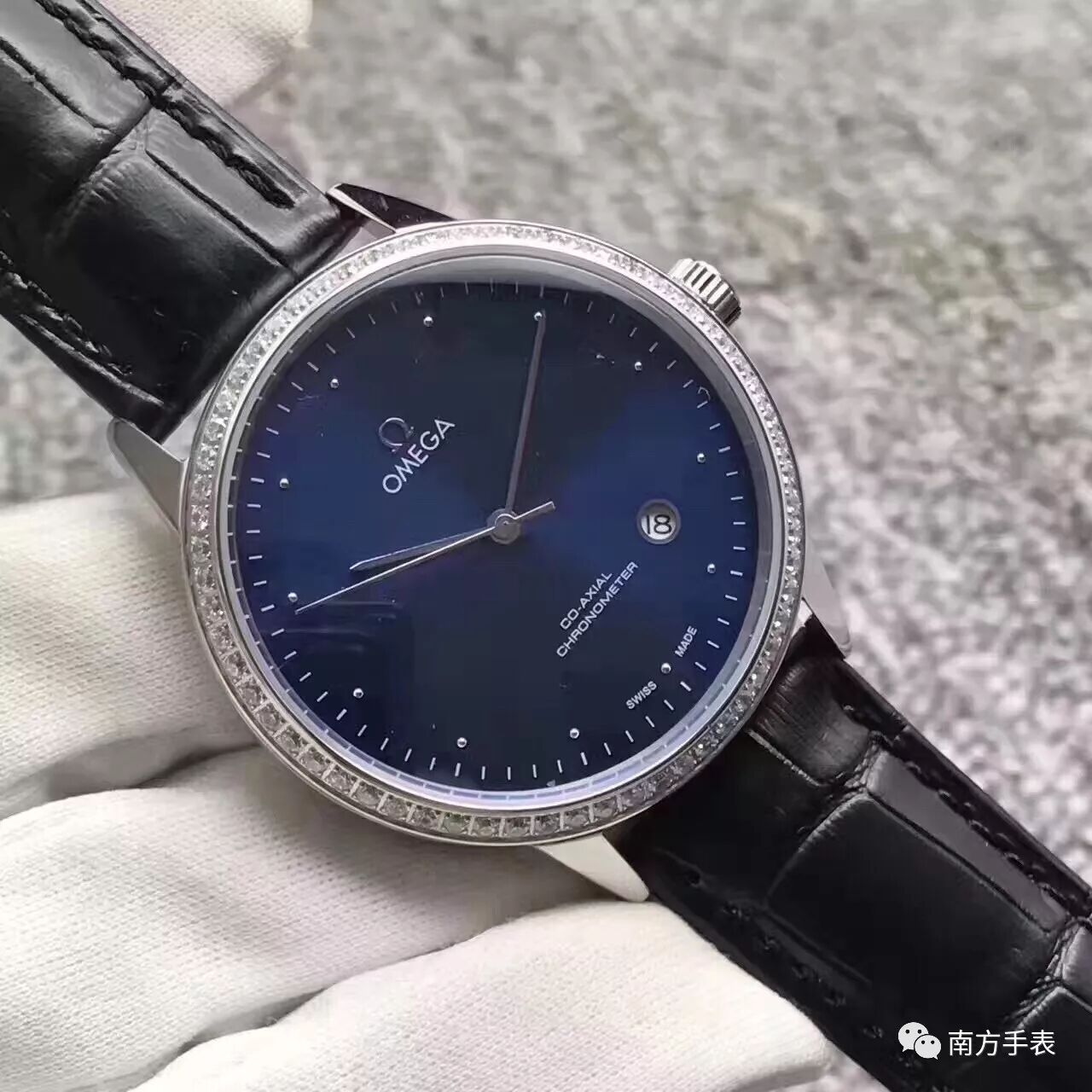 新款欧米茄,材料316钢精雕细琢,搭载零返修Cal.821A机芯,蓝宝石玻璃,搭配光泽靓丽的意大利小牛皮表带,有炫光蓝,土豪金,高档灰三色面任君选择!