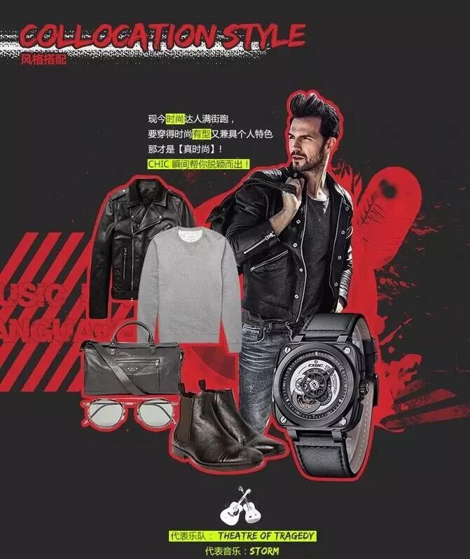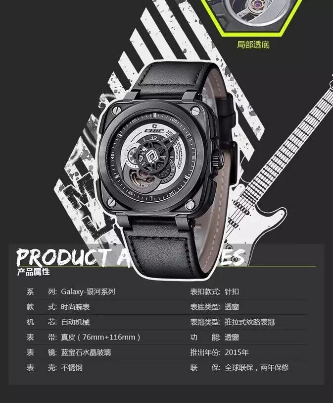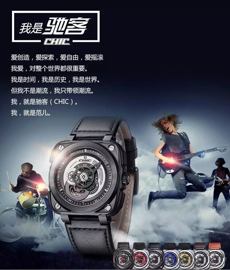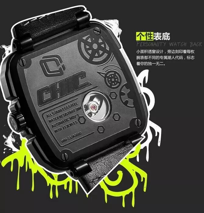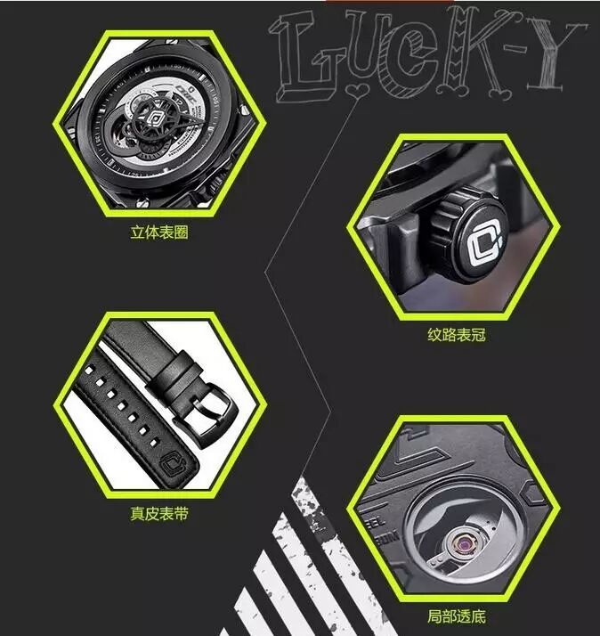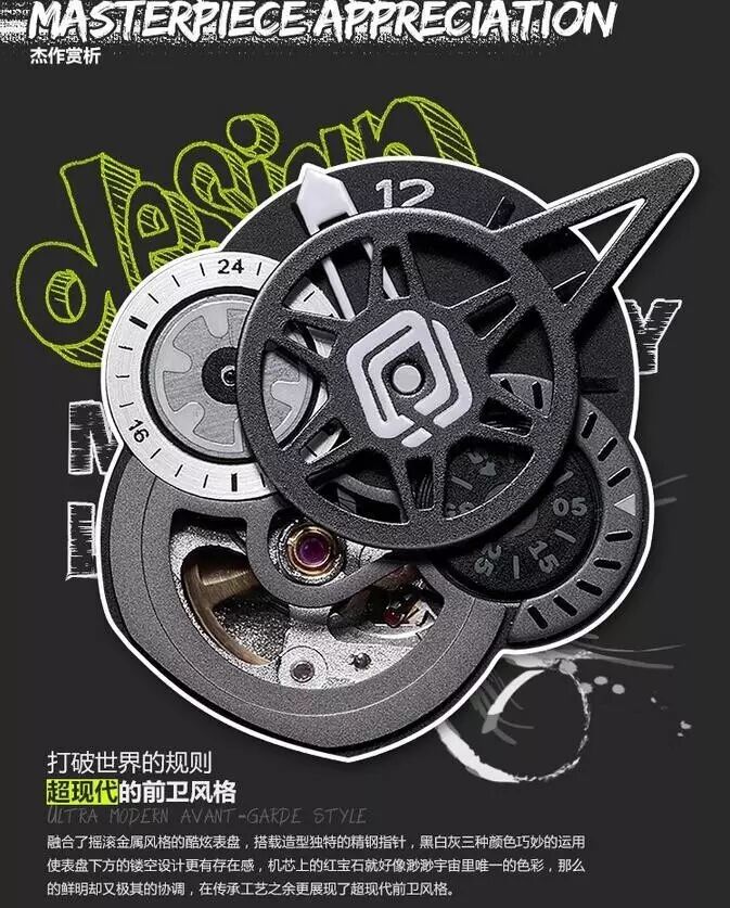 水晶玻璃表盘 整个手表的设计很具有摇滚 朋克风格