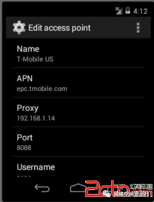 2、安卓模拟器设置,Menu>System setting>More>Mobile networks>Access Point Names> 选择默认的APN或者新建一个并且设置为默认代理