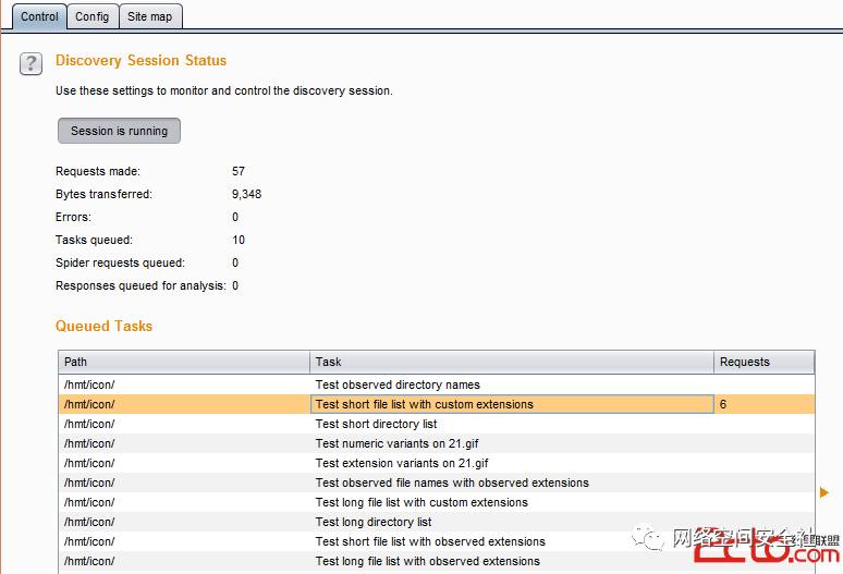 该发现会话使用自己的站点地图,显示所有已发现的定义范围内的所有内容。如果您已配置Burp的话,新发现的项目也将被添加到Burp的主要站点地图。