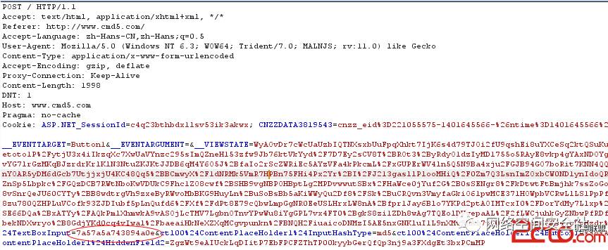 以www.cmd5.com网站为例做的批量解密 首先,还是同样的设置好代理之后访问www.cmd5.com,然后抓包