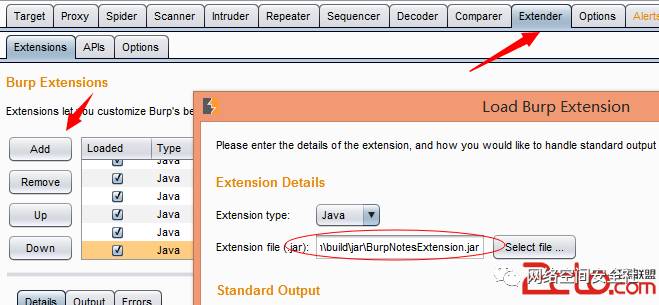 在Burp主界面Extender>>Extensions>>Burp Extensions下的add按钮