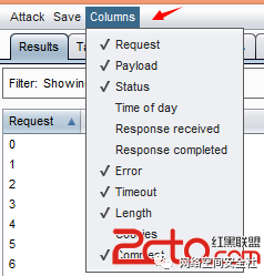 request 请求数 Position 有效载荷位置编号 Payload 有效载荷 Status http状态 Error 请求错误 Timeout 超时 Length 字节数 Comment 注释
