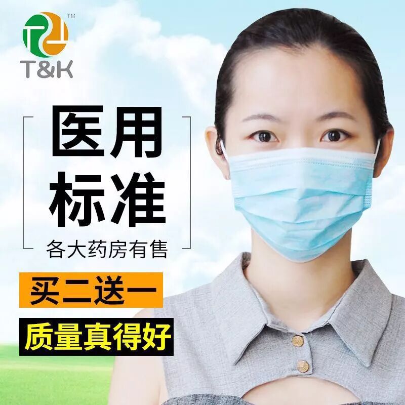 泰恩康一次性医用口罩50只冬季黑色防尘防雾霾透气独立包装男女潮【包邮】