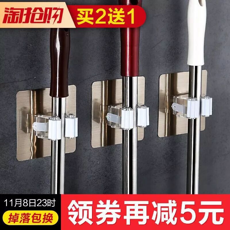 双庆卫生间免钉壁挂拖把架 浴室扫把墙上免打孔挂钩 强力吸盘无痕【包邮】