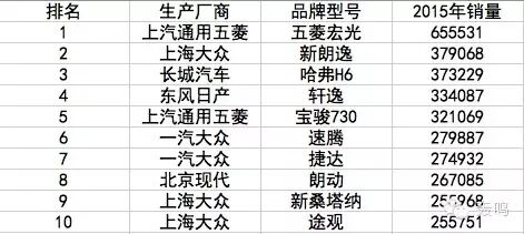 但只有一个榜单,我打赌你看不懂,也不能瞎显摆!那就是——中国乘用车年度销售前十车型榜!