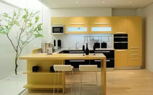 开放式厨房在装修中也要注意色彩风水,厨房适合采用黄色和米色为主色调,这两种颜色有聚财生财的功效。清新的绿色也是不错的选择,绿色五行属木,而厨房五行属火,符合木生火的原理。最好不要选择黑色、蓝色,这两种颜色乃水气之色,与厨房水火不容,形成对冲,对居住者运势有影响。另外黑色和蓝色会让人食欲下降,也不利于健康。