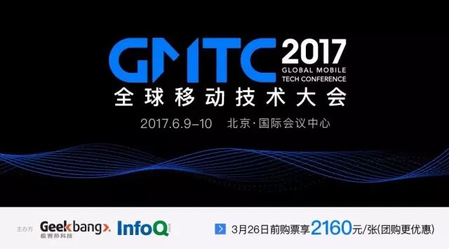 由InfoQ主办的第二届GMTC全球移动技术大会开始报名了!大会将于6月9-10日在北京举行。本届大会,我们将探讨智能时代的大前端,在动态化、React Native等逐渐流行的现在,移动和前端的融合将会发生怎样的变化?点击阅读原文进入大会官网,6折报名火热开启!