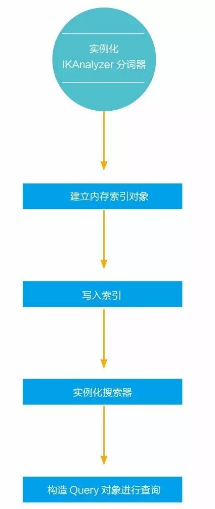 实现流程如图3所示,首先实例化一个IKAnalyzer分词器,然后建立内存索引对象RAMDirectory,将配置写入索引IndexWriter。在后续的搜索过程中需要实例化搜索器,最后用构造的Query对象在搜索器中进行搜寻,可依次搜索到相似度最高的指定条数的记录。