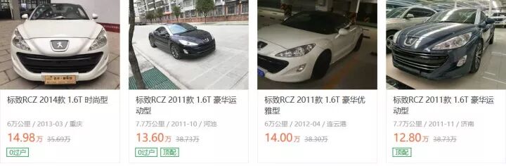 再来说说二手车市场里的行情,RCZ的车源相对来说还是有一些的,而且如果各位老铁不喜欢运动款,那运气好的话,15万还能抄到14款时尚版的底,这个也是老泽最为推荐的,毕竟车龄越短越好嘛。