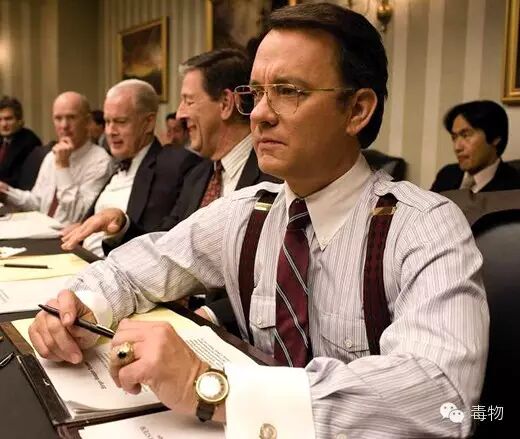 汤姆·汉克斯在电影《查理·威尔逊的战争》中,笔挺的西装让人印象深刻,而且每件衬衣都搭配着高品位的袖扣。