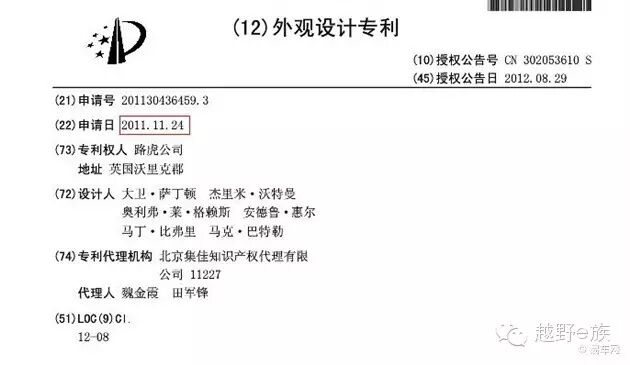 而在此之后,更有经典的路虎极光案例。,外观设计专利必须在向大众公布之前申报;而申请专利的发明创造在申请日以前六个月内,有下列情形之一的,不丧失新颖性,。但是路虎不知道是忘了还是懒得申请,在2010年12月的广州车展上正式发布一年之后,才去申请了外观专利,结果导致这个外观专利形同虚设,加上极光的外形设计极其成功,一时间大街上跑满了各种品牌的“路虎极光”。